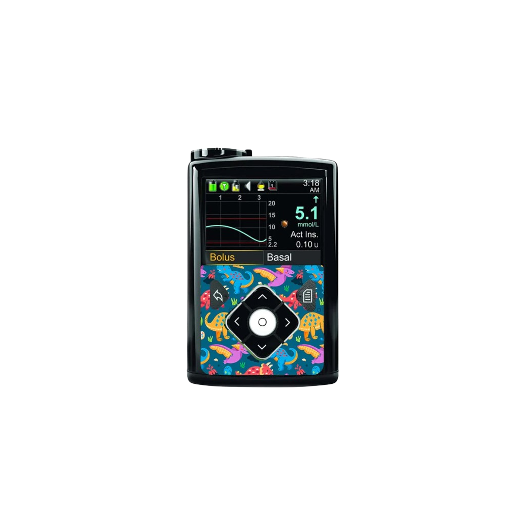 Inzulinová pumpa MEDTRONIC MINIMED 640g, 680g, 780g samolepka - motiv Dinosaur - osobitý vzhled
